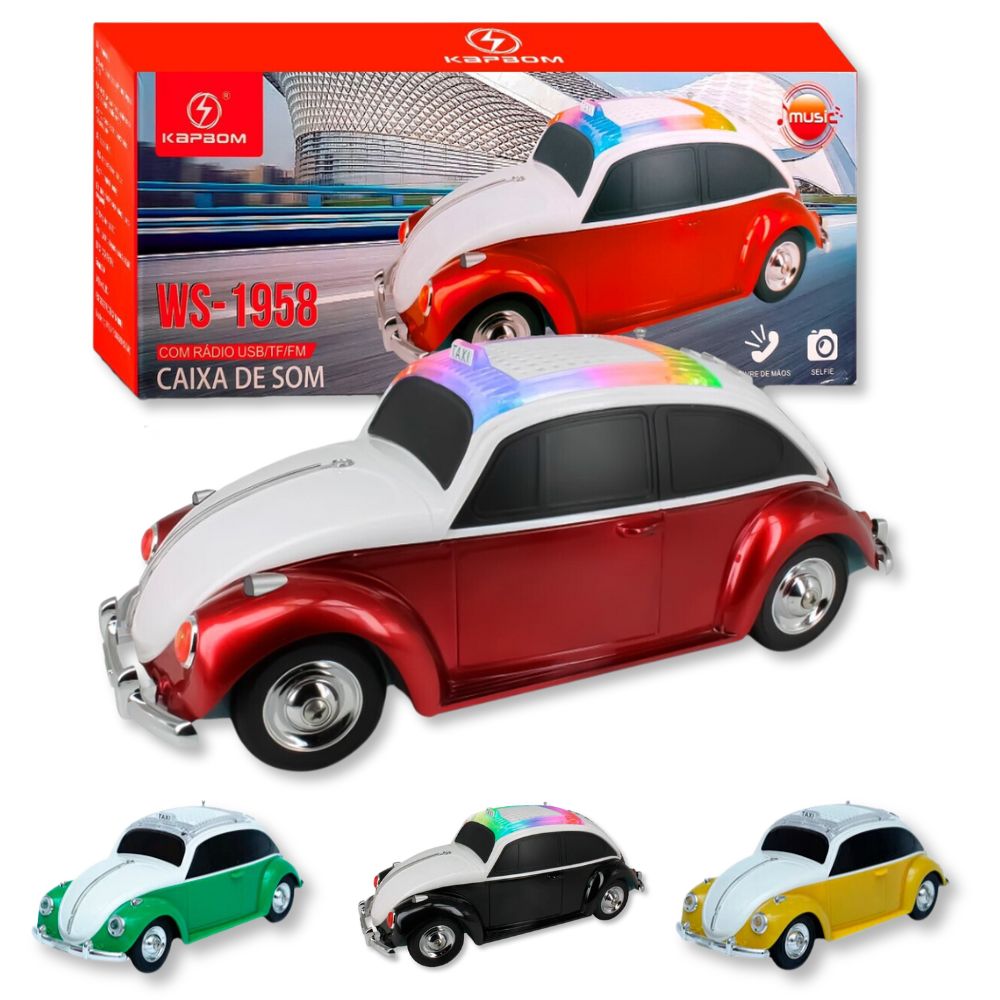 A Caixa de Som Bluetooth Fusca da Kapbom une estilo retrô e tecnologia em um único produto. Com design inspirado no clássico Fusca, ela é perfeita para quem busca uma peça decorativa e funcional. Compacta, potente e com conectividade Bluetooth, reproduz suas músicas favoritas com qualidade surpreendente. Ideal para ambientes descontraídos ou como presente criativo, a WS-1958 se destaca pelo visual diferenciado e ótimo desempenho sonoro.